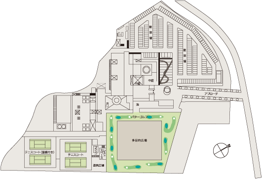 豊かな自然に包まれたテニスコート。ゲートボール・グラウンドゴルフなどが楽しめる多目的グランドなど多彩に取り揃えています。